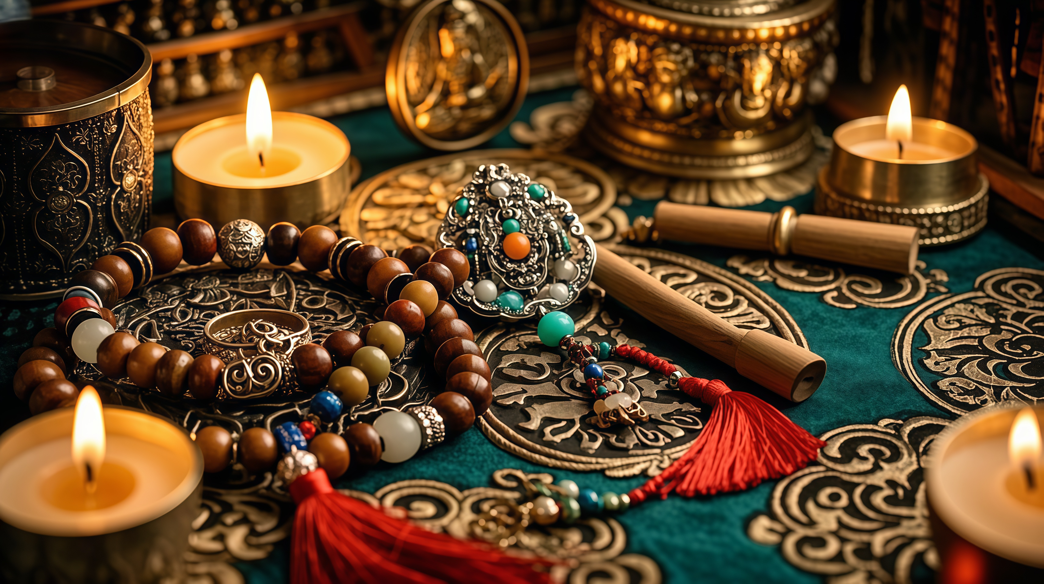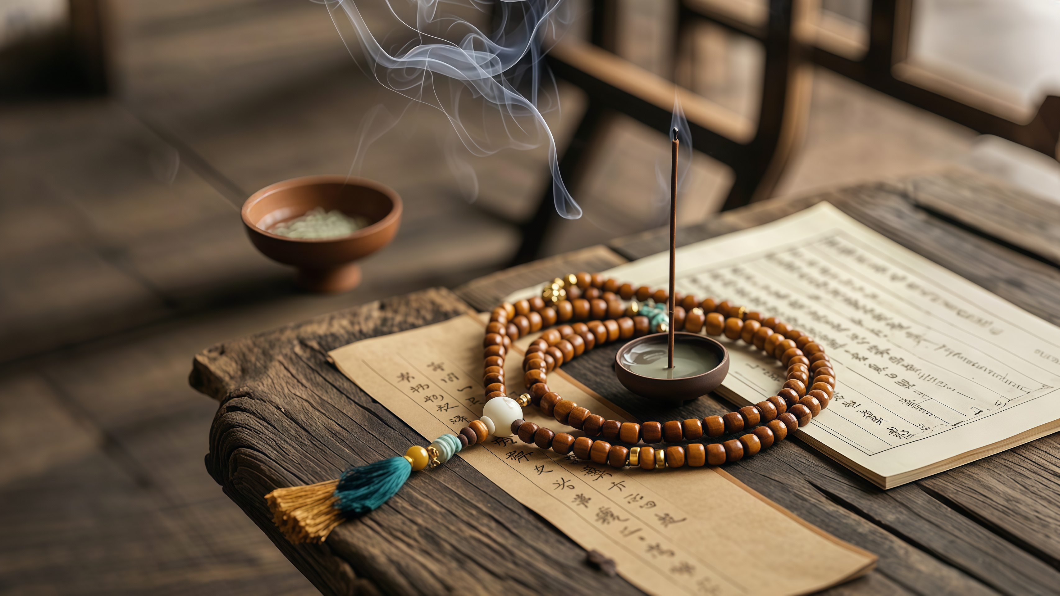 Practitioners symbolically eliminate these troubles by twisting the prayer beads to achieve physical and mental tranquility.