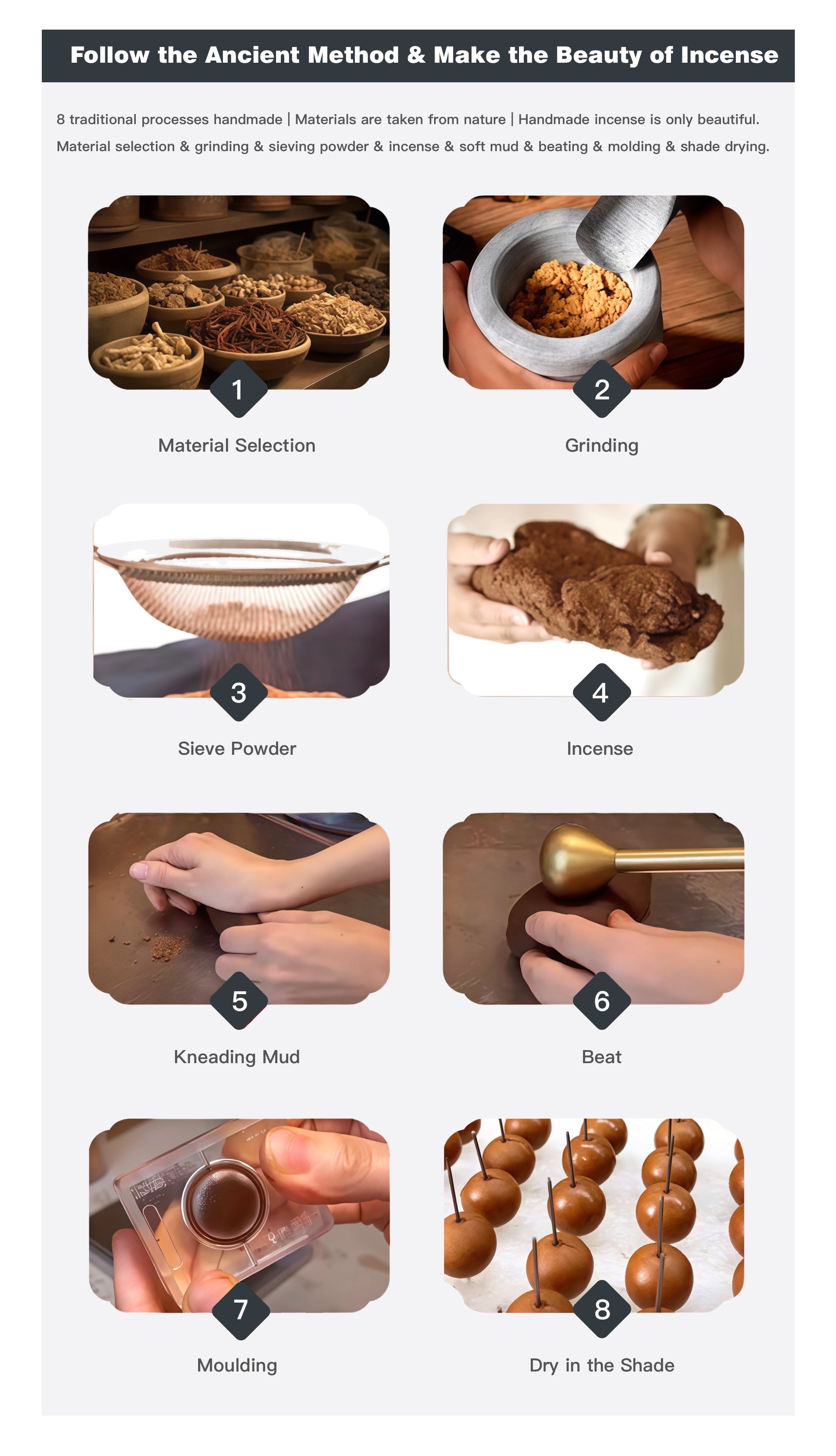 8 traditional processes handmade | Materials are taken from nature | Handmade incense is only beautiful