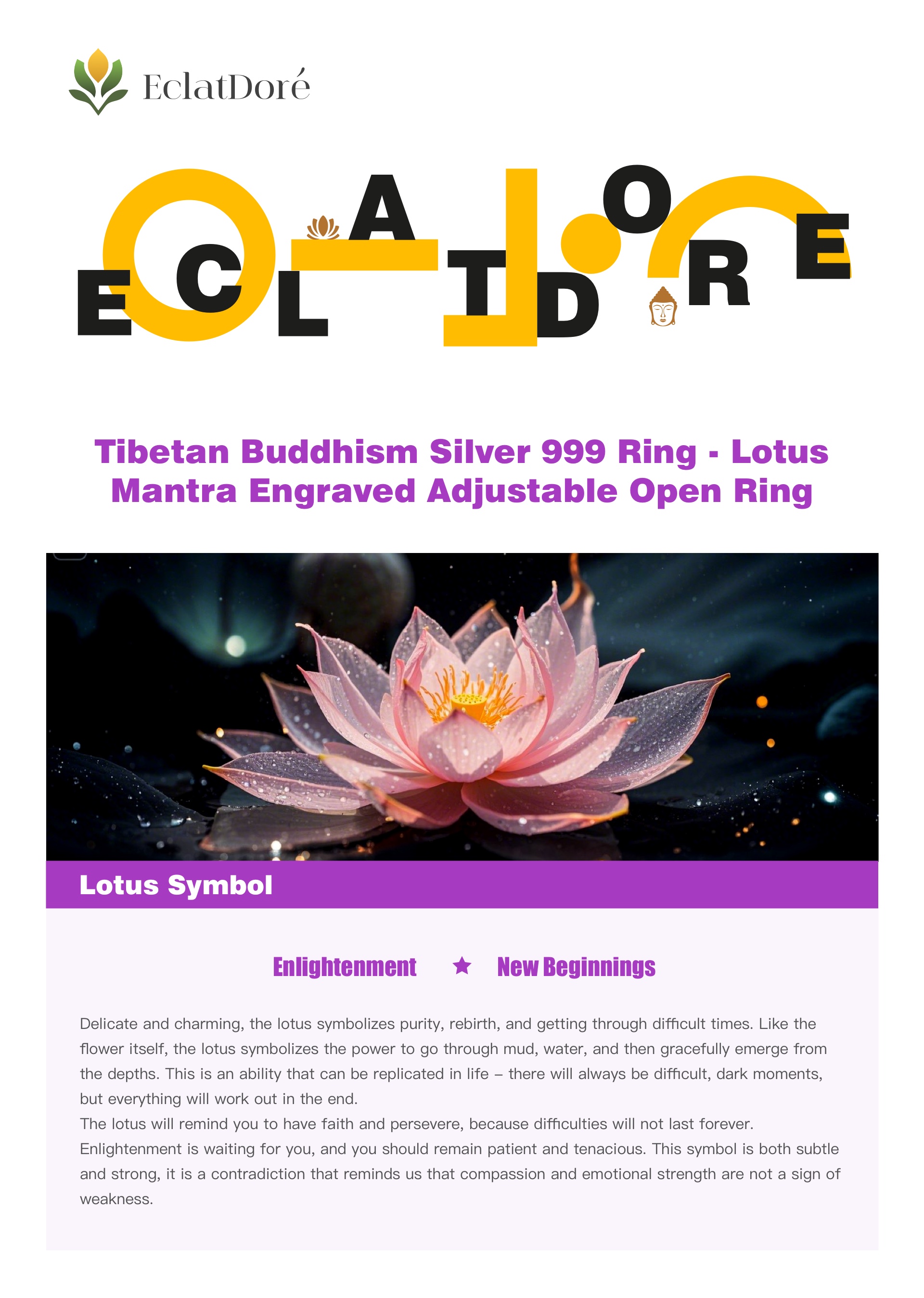 Tibetan Buddhist Silver 999 Ring - Lotus Mantra Engraved Adjustable Open Ring is inspired by the lotus pattern, symbolizing the power of purity, healing and self-calmness. The scriptures engraved inside the ring can always help the wearer adjust the energy, turn danger into safety, and help to feel comfortable and healthy!💕