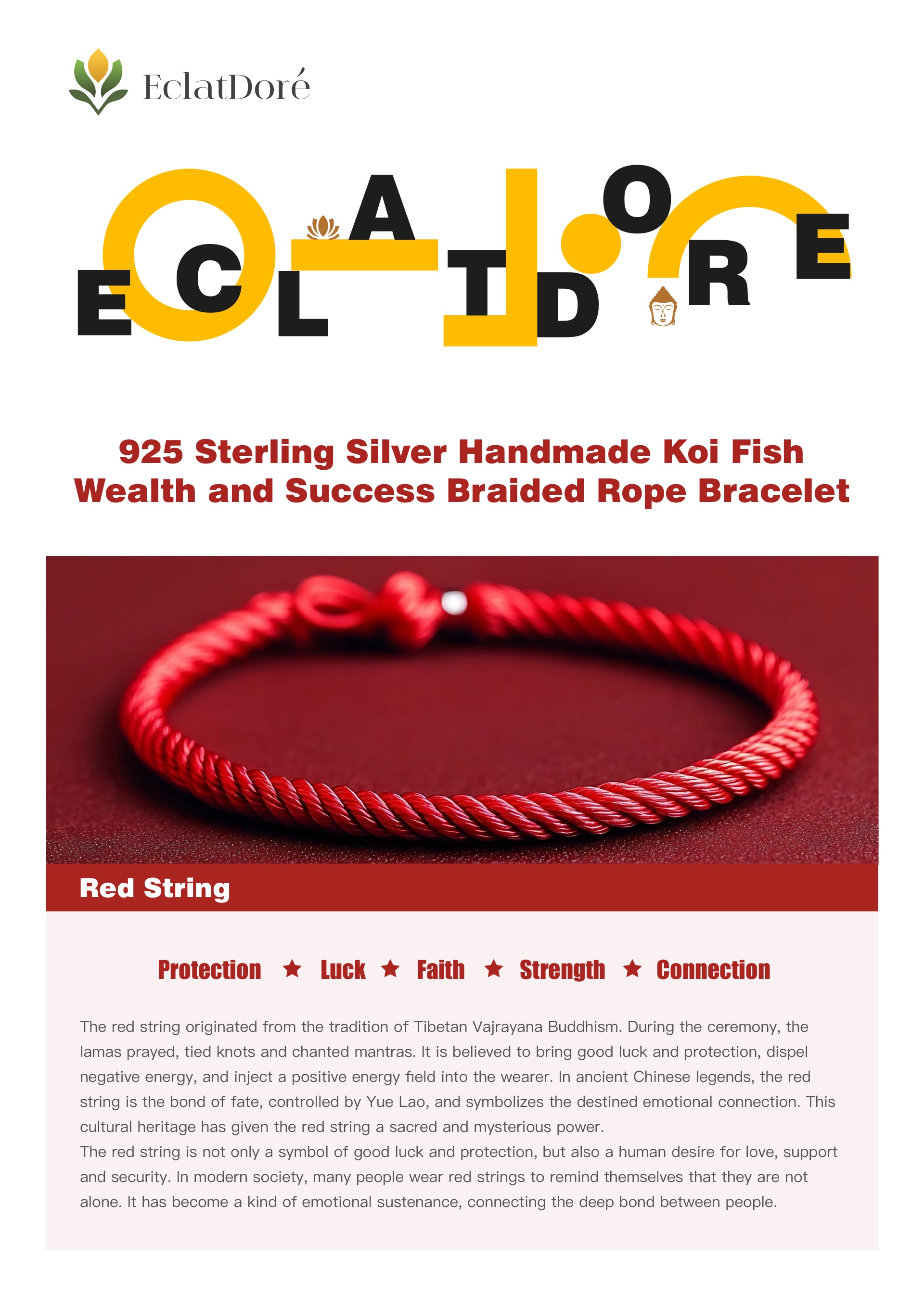 The red string originated from the tradition of Tibetan Vajrayana Buddhism. During the ceremony, the lamas prayed, tied knots and chanted mantras. It is believed to bring good luck and protection, dispel negative energy, and inject positive energy fields into the wearer. In ancient Chinese legends, the red string is the bond of fate, controlled by Yue Lao, and symbolizes the destined emotional connection. This cultural heritage has given the red string a sacred and mysterious power.