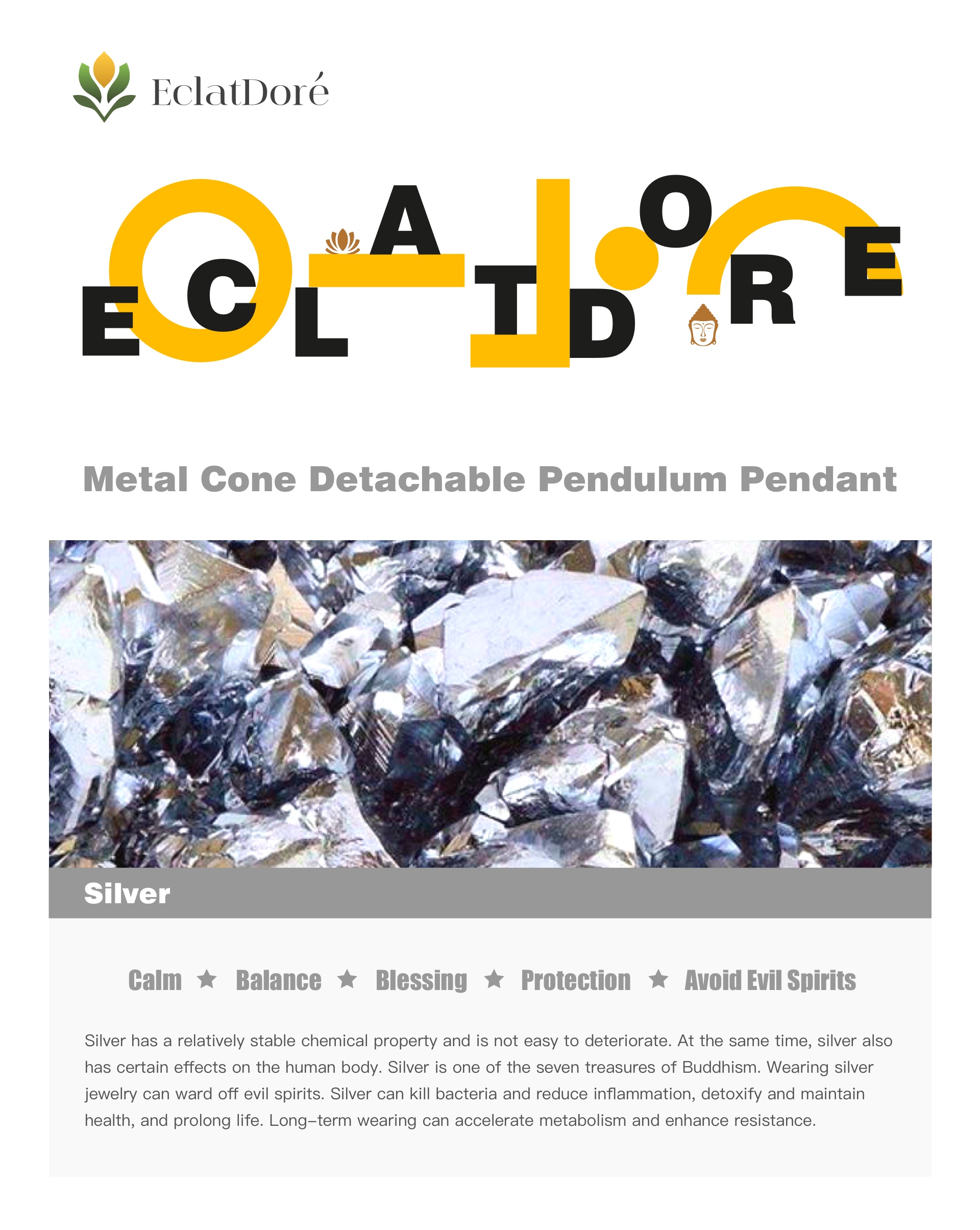 Designed for meditation, reiki and energy practices, this versatile cone pendant enhances your spiritual practice. Made from premium metal, it helps boost focus, intuition and positive energy flow.