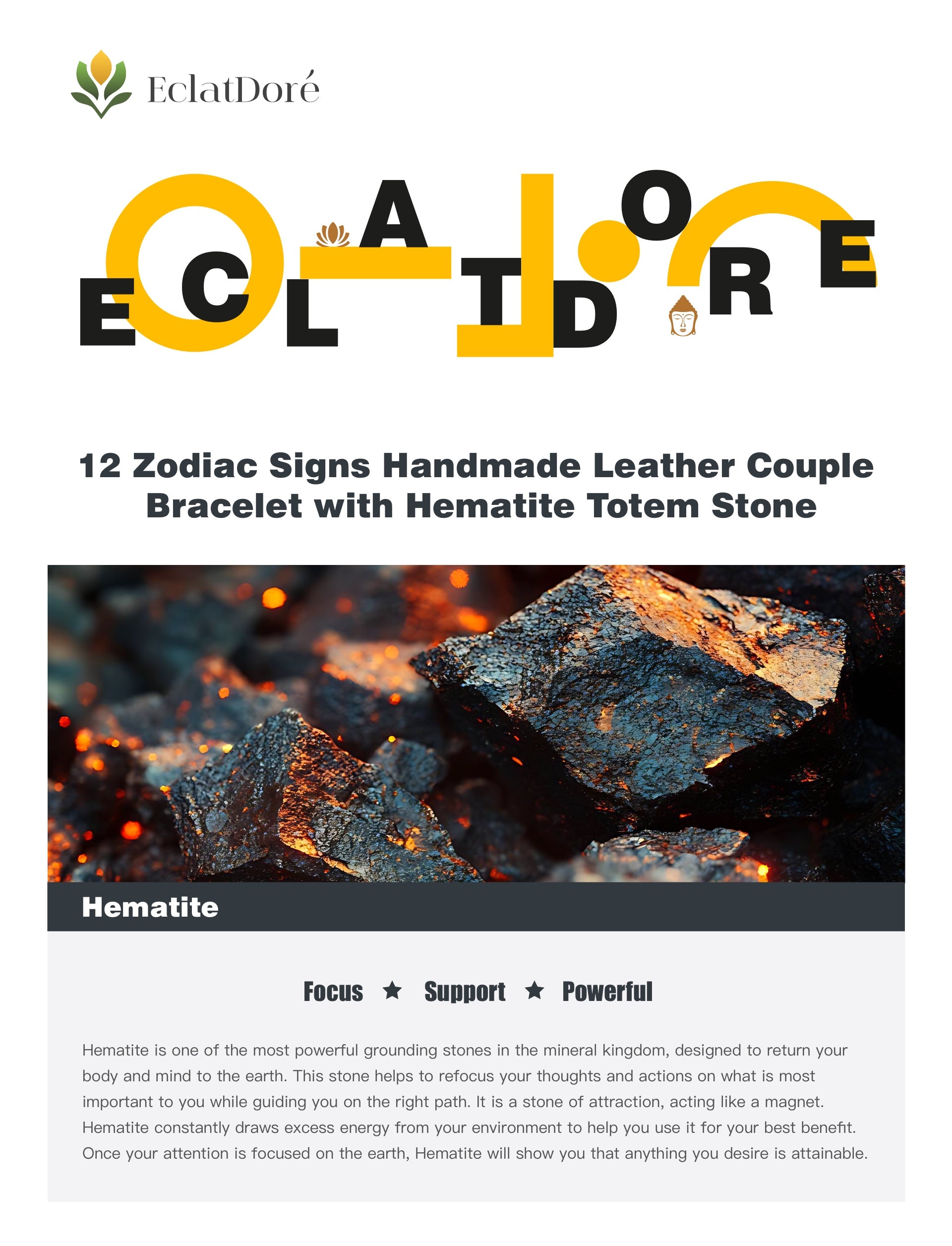 With nature and spirituality as the core design inspiration, it is paired with the hematite totem energy stone that symbolizes strength and balance, bringing endless protection and love power to you and your lover.