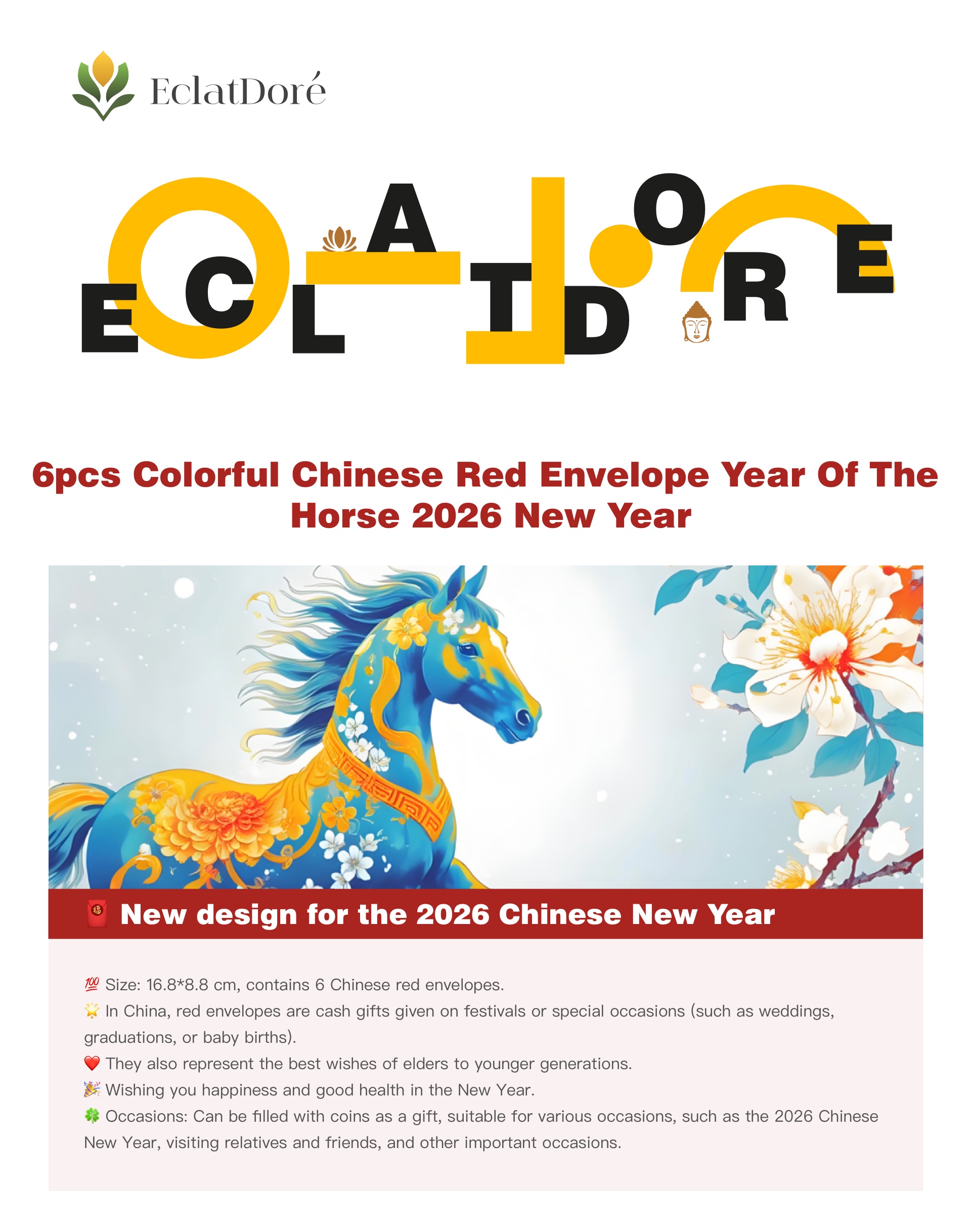 6pcs Colorful Chinese Red Envelope Year Of The Horse 2026 New Year