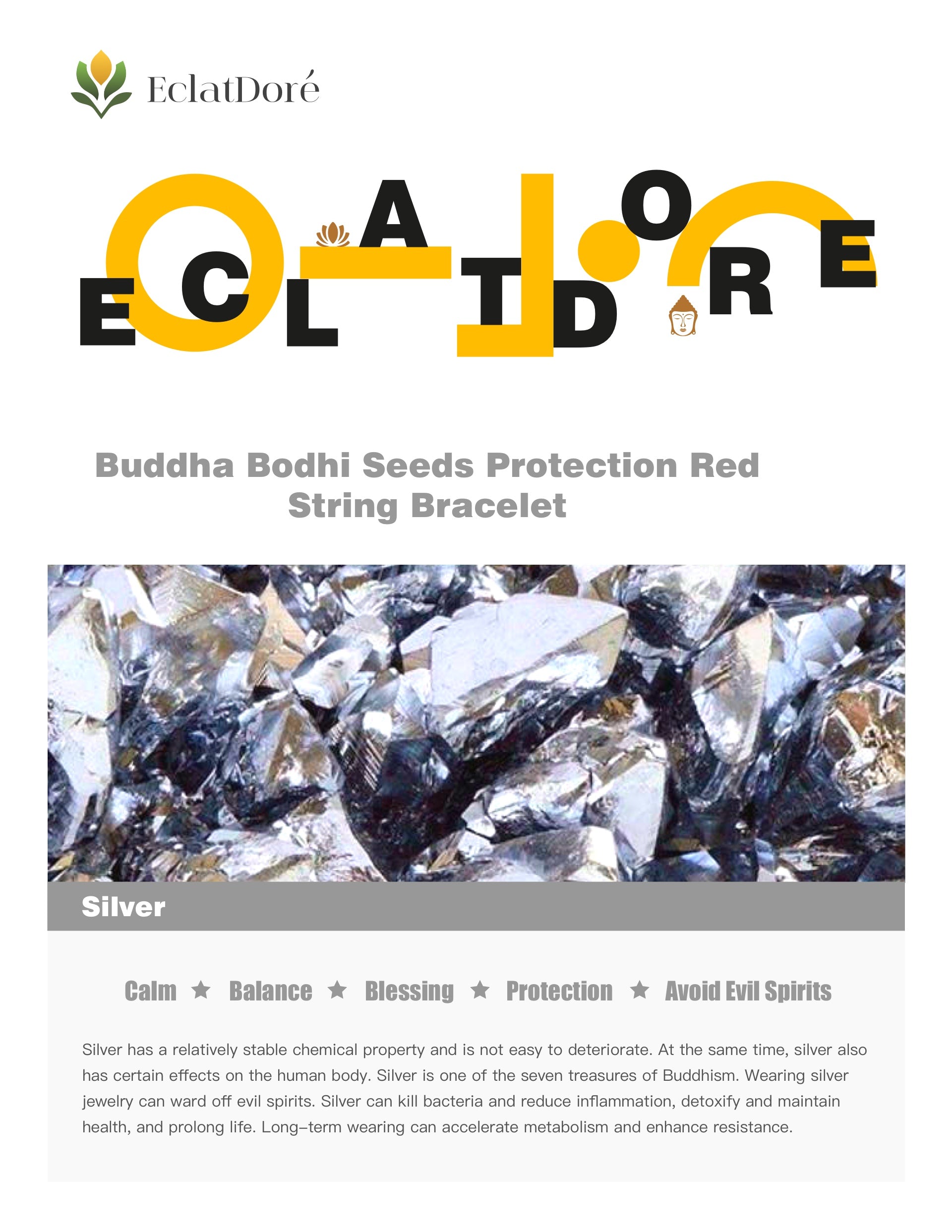 Silver has a relatively stable chemical property and is not easy to deteriorate. At the same time, silver also has certain effects on the human body. Silver is one of the seven treasures of Buddhism. Wearing silver jewelry can ward off evil spirits. Silver can kill bacteria and reduce inflammation, detoxify and maintain health, and prolong life. Long-term wearing can accelerate metabolism and enhance resistance.