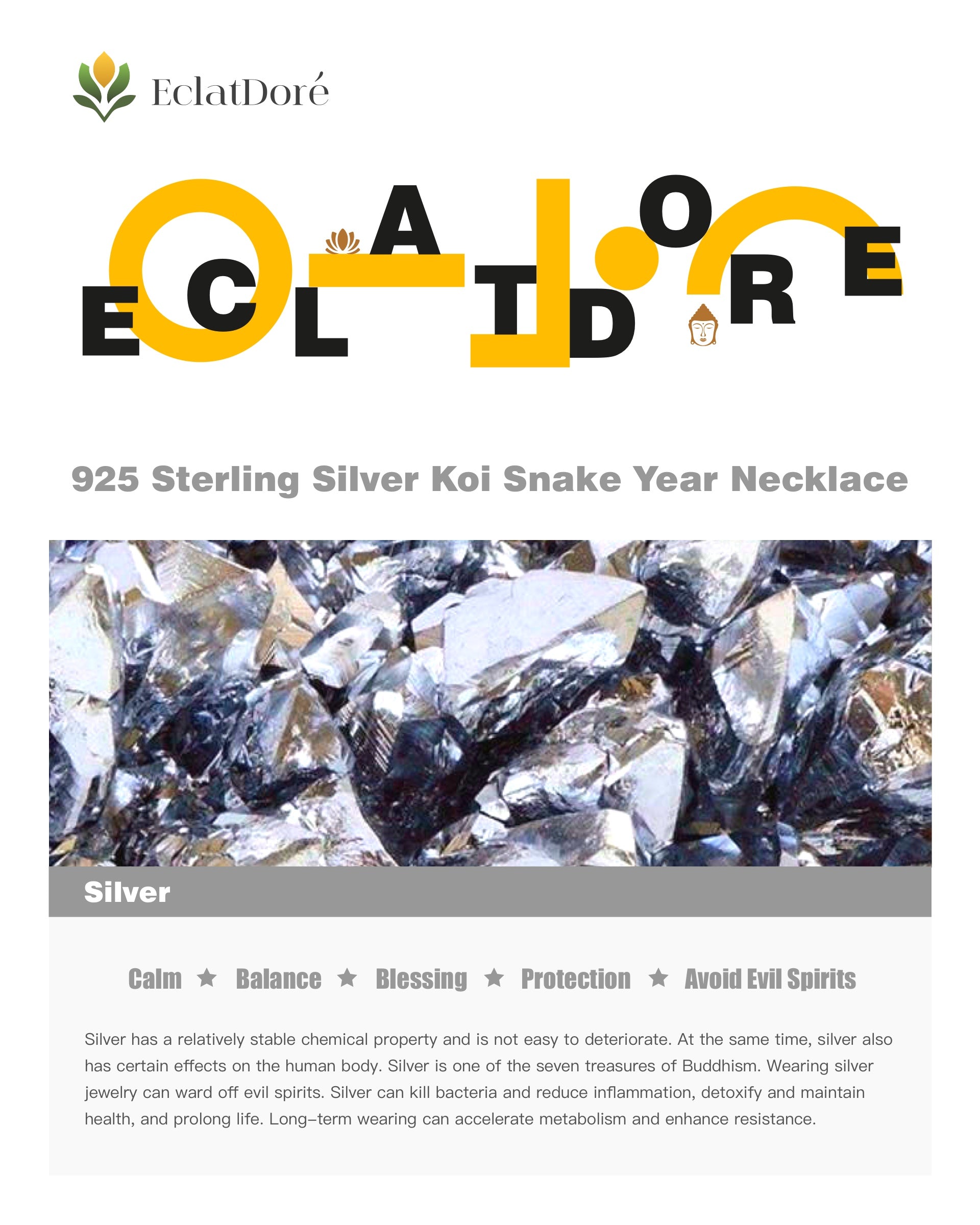 Silver has a relatively stable chemical property and is not easy to deteriorate. At the same time, silver also has certain effects on the human body. Silver is one of the seven treasures of Buddhism. Wearing silver jewelry can ward off evil spirits. Silver can kill bacteria and reduce inflammation, detoxify and maintain health, and prolong life. Long-term wearing can accelerate metabolism and enhance resistance.