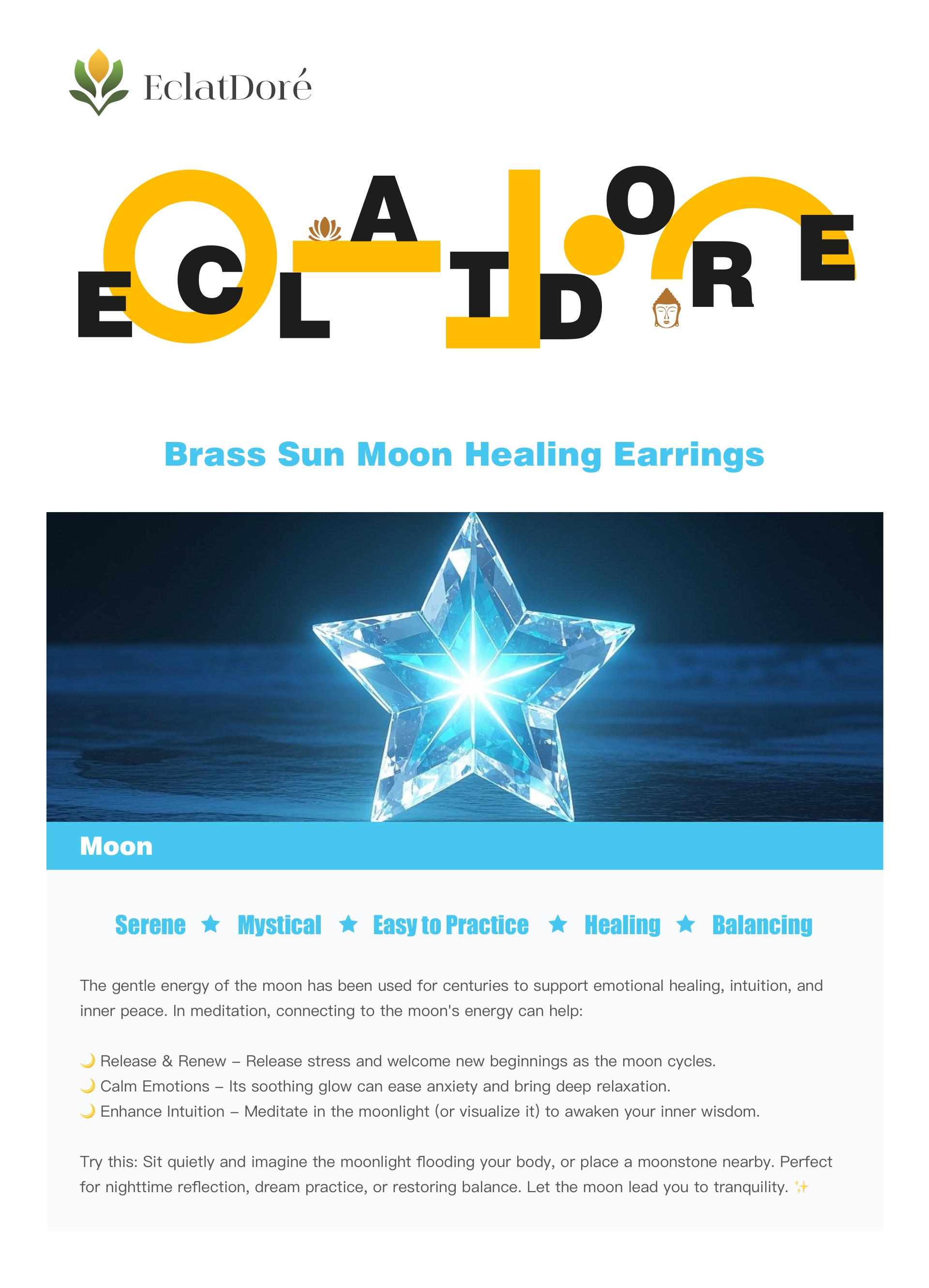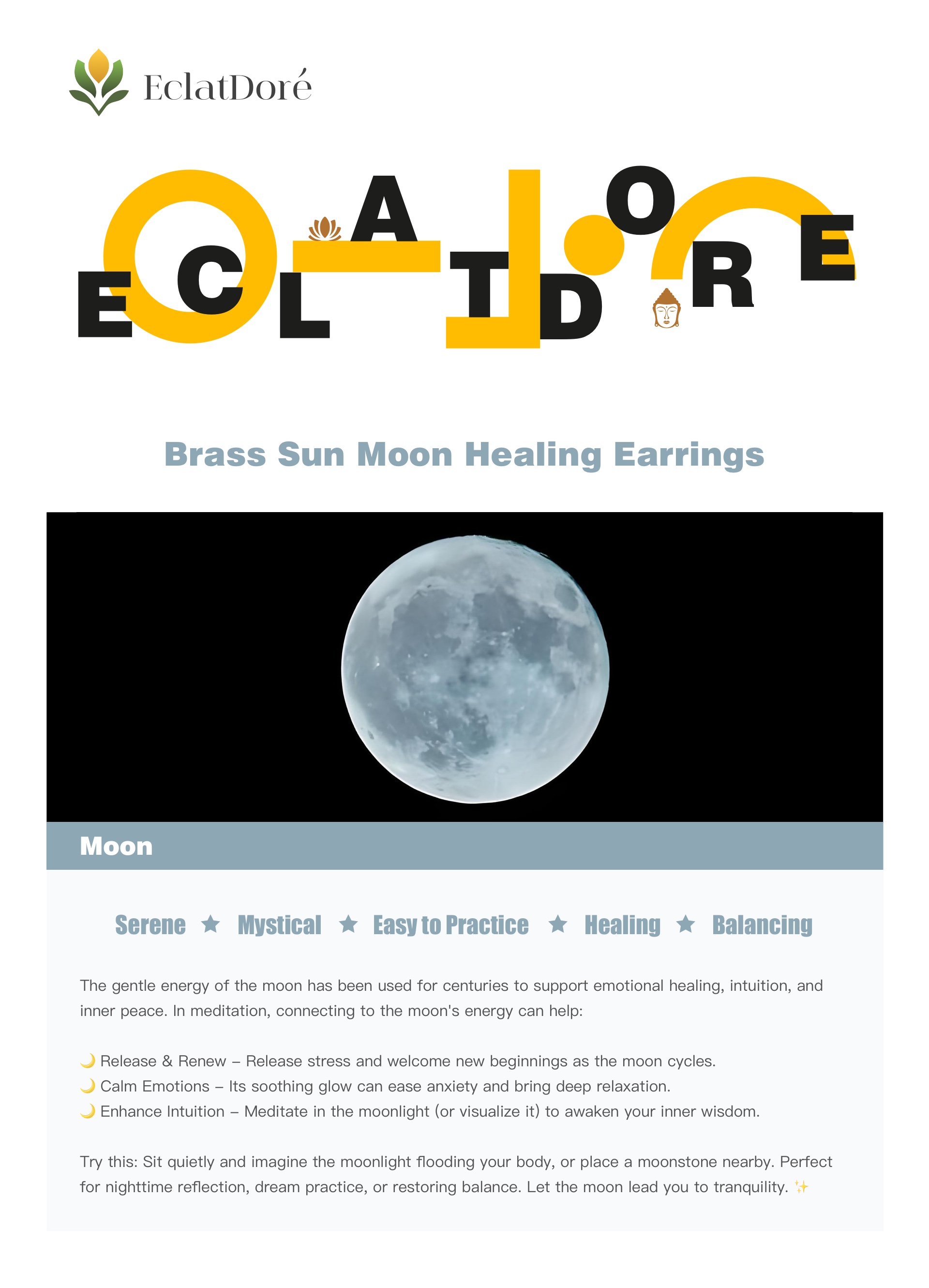 Bringing together the vitality of the Sun (☀️ courage & energy) and the intuition of the Moon (🌙 calm & clarity), these handcrafted brass earrings help you master cosmic balance. Designed for energy flow and chakra alignment, they are perfect for: