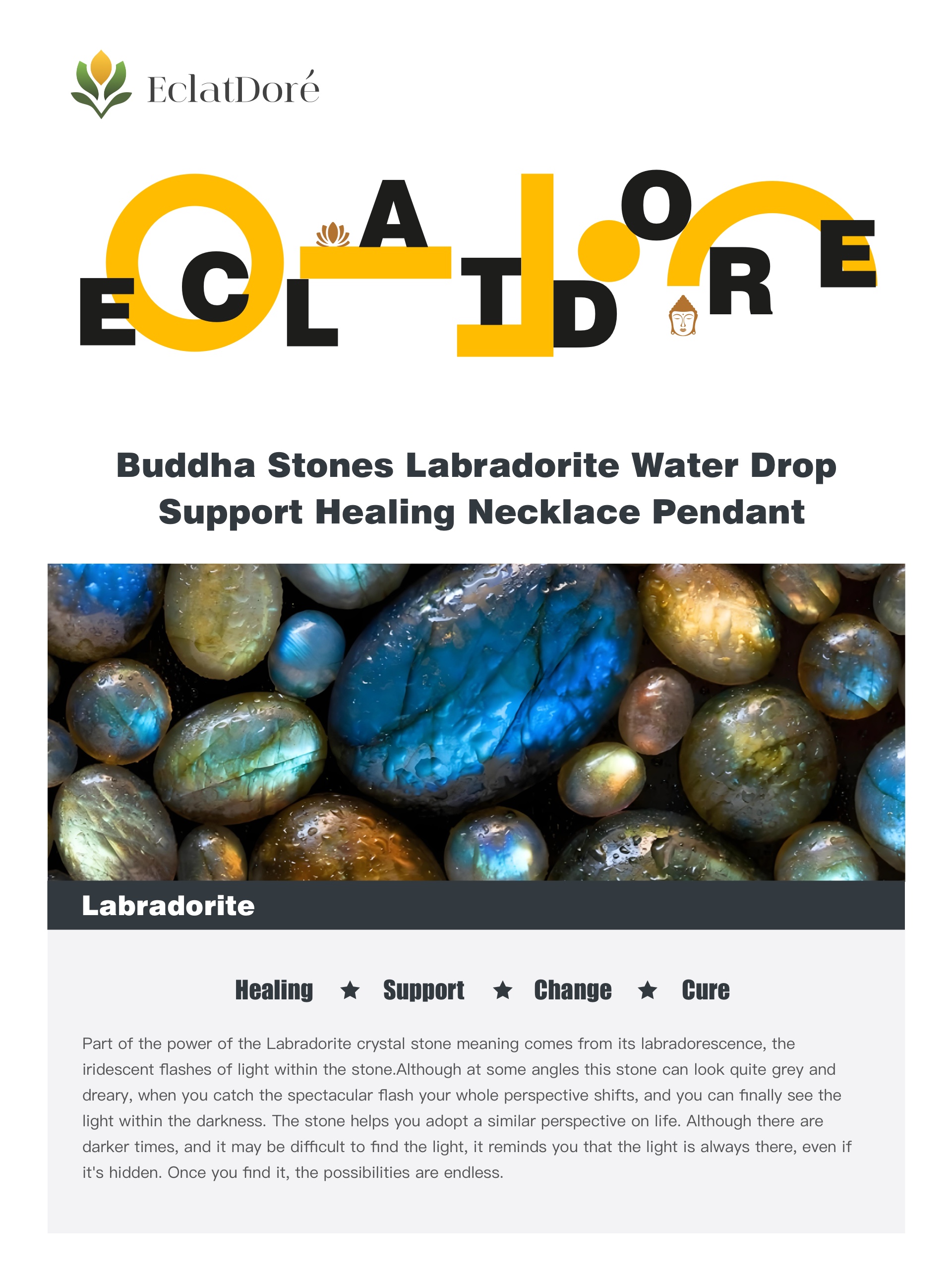 The Labradorite Water Drop Support Healing Necklace Pendant is a beautiful and meaningful piece of jewelry that combines the natural beauty of Labradorite with its healing properties. This pendant is expertly crafted from high-quality Labradorite, a gemstone that is known for its unique iridescence and spiritual properties.