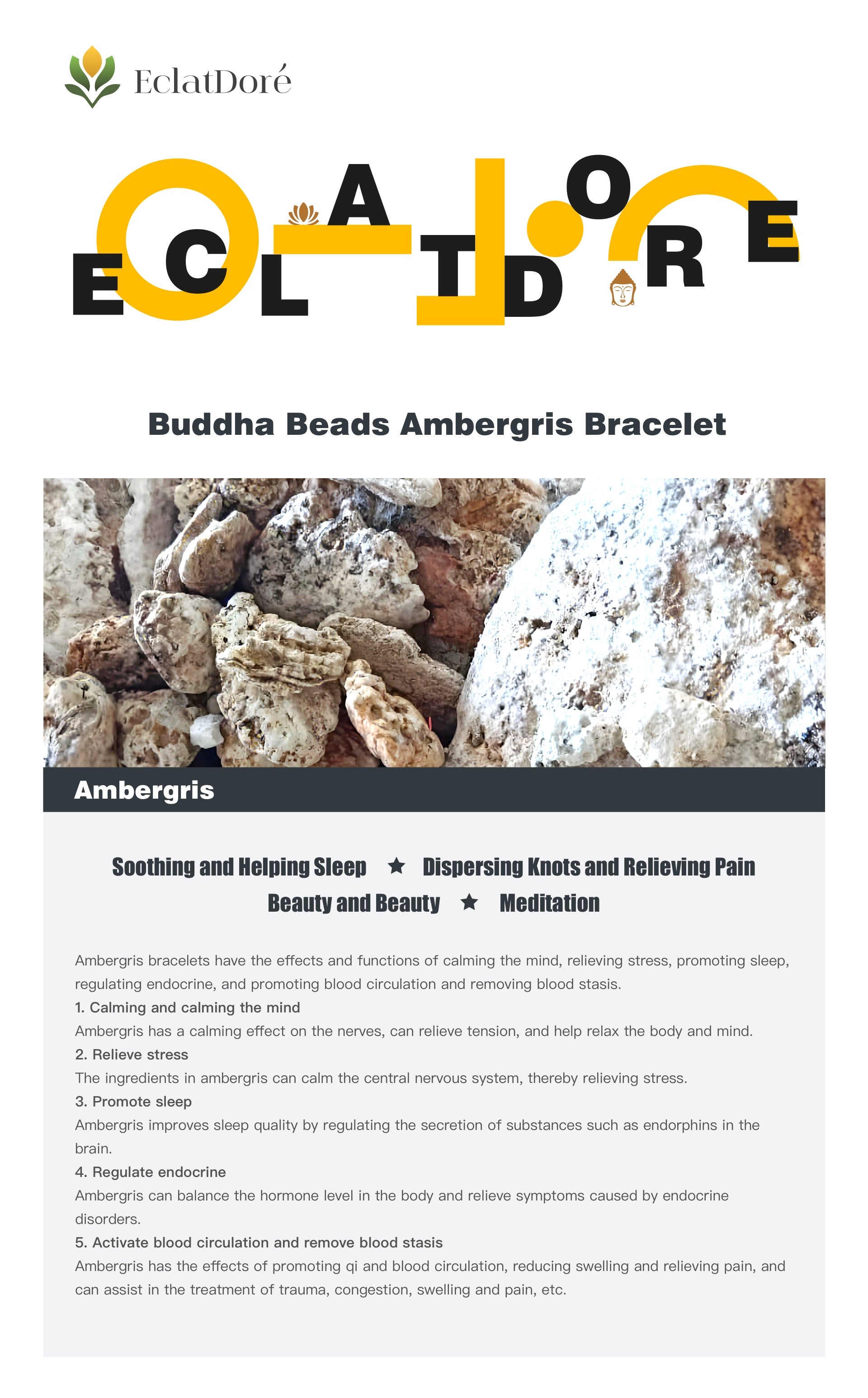 Ambergris bracelets have the effects and functions of calming the mind, relieving stress, promoting sleep, regulating endocrine, and promoting blood circulation and removing blood stasis.