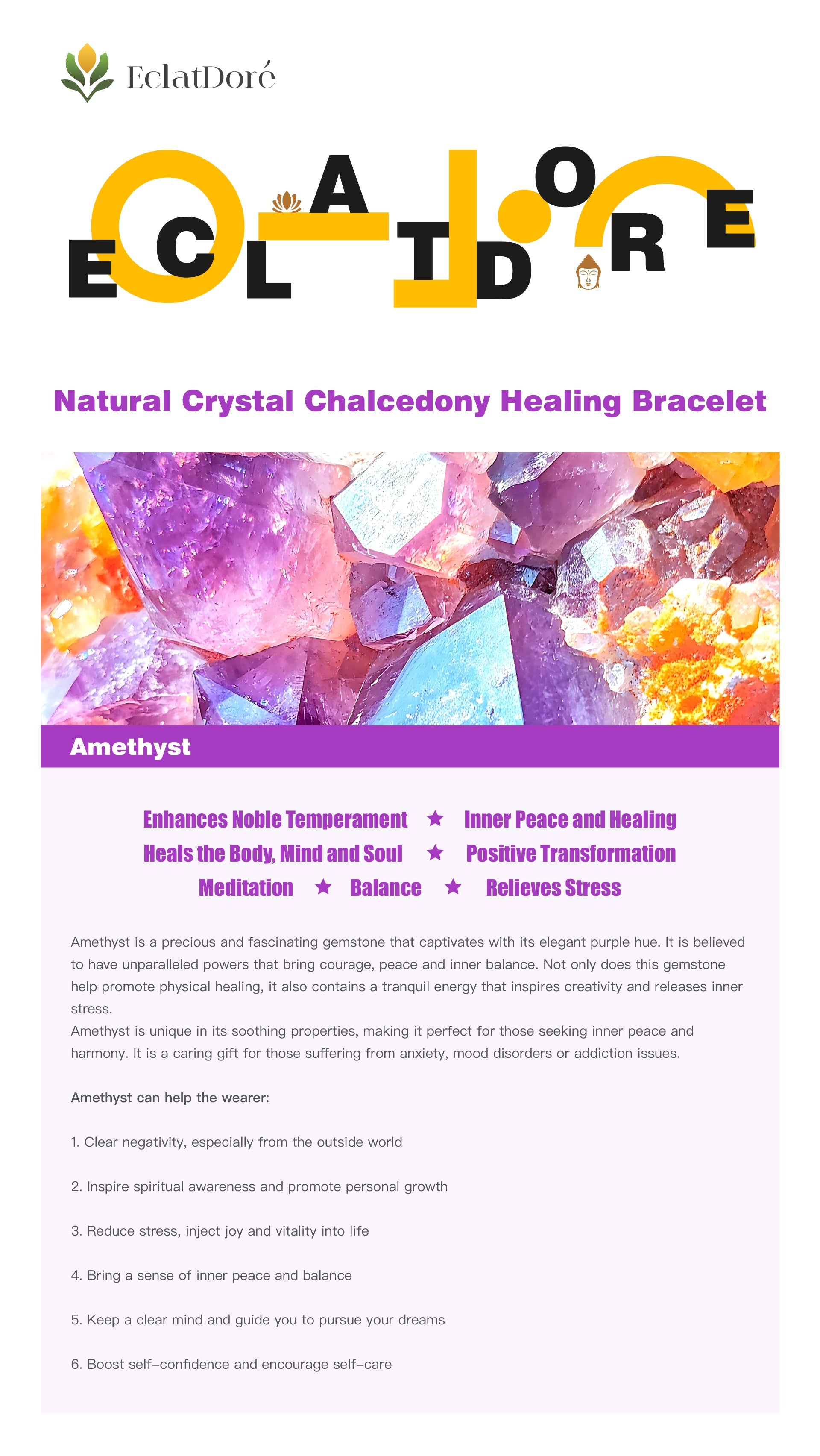 Let the Blue Crystal Amethyst Bracelet be your most loyal companion, feel the peace it brings, and protect your emotional and spiritual health. Start your own healing journey, find clear direction in peace, and live a better life.