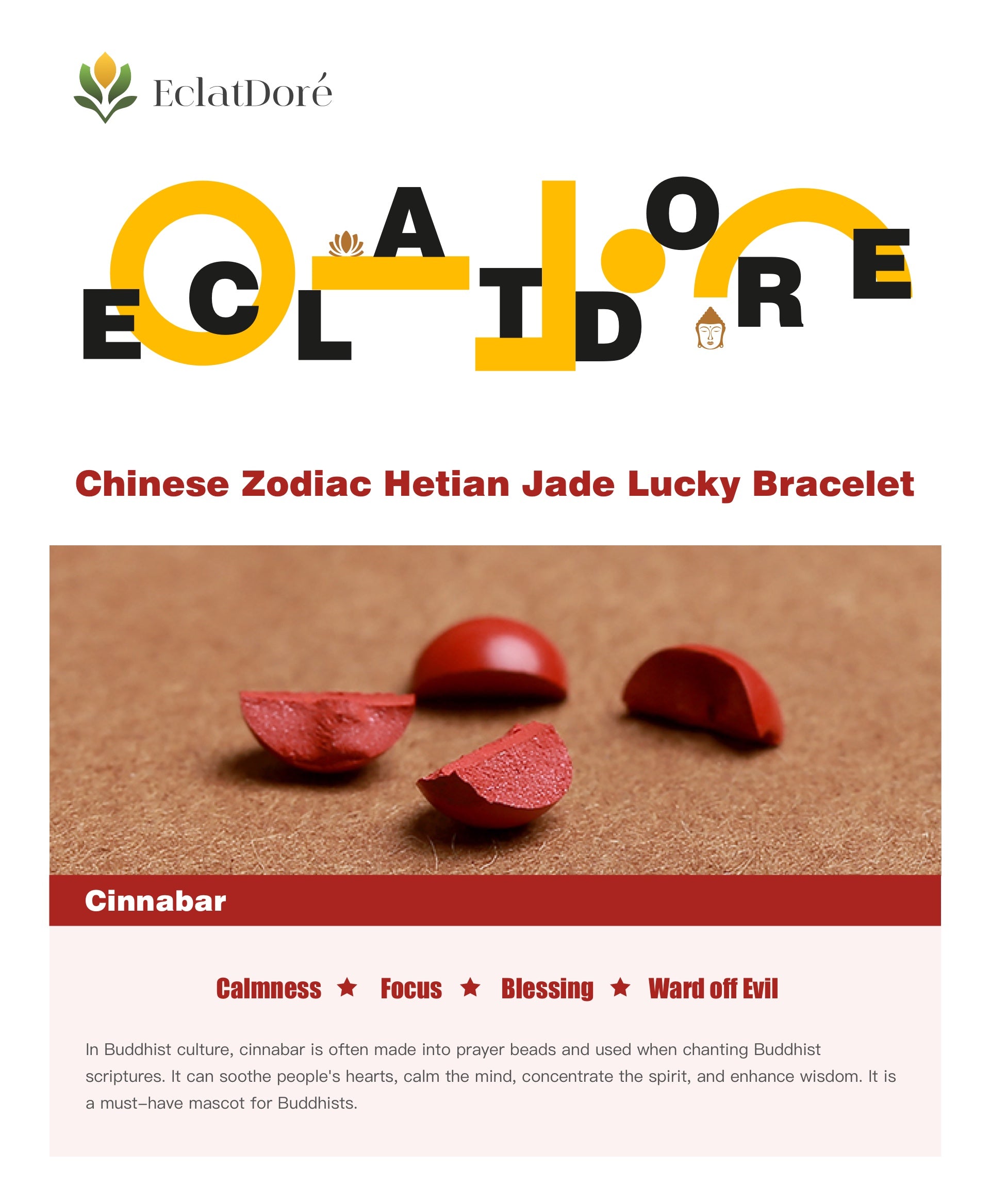 In Buddhist culture, cinnabar is often made into prayer beads and used when chanting Buddhist scriptures. It can soothe people's hearts, calm the mind, concentrate the spirit, and enhance wisdom. It is a must-have mascot for Buddhists.