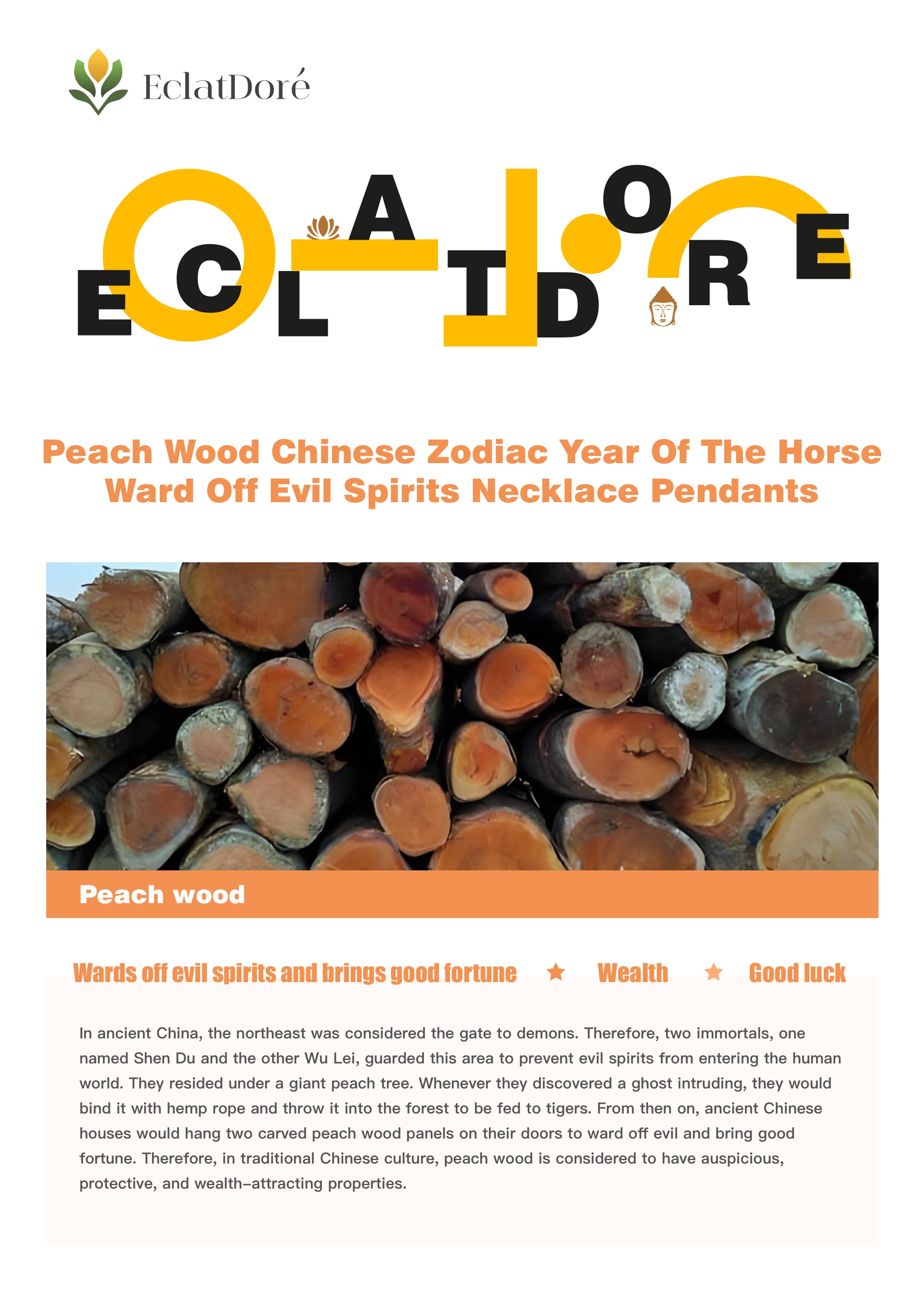 Peach Wood Chinese Zodiac Year Of The Horse Ward Off Evil Spirits Necklace Pendants