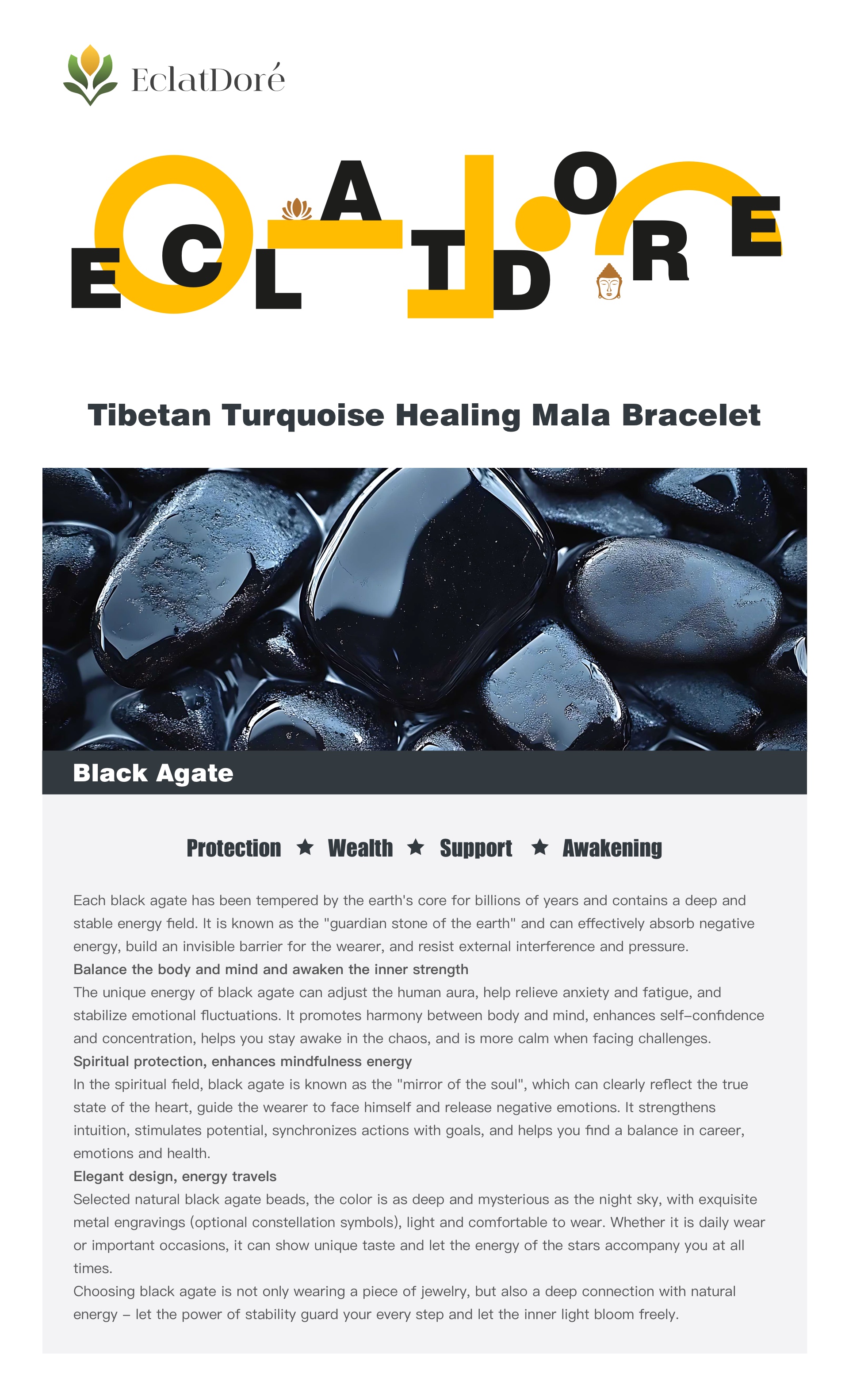 Each black agate, tempered by the Earth's core for eons, possesses a profound and stable energy field. Known as the "guardian stone of the earth," it effectively absorbs negative energy, creating an invisible barrier for the wearer against external interference and stress.