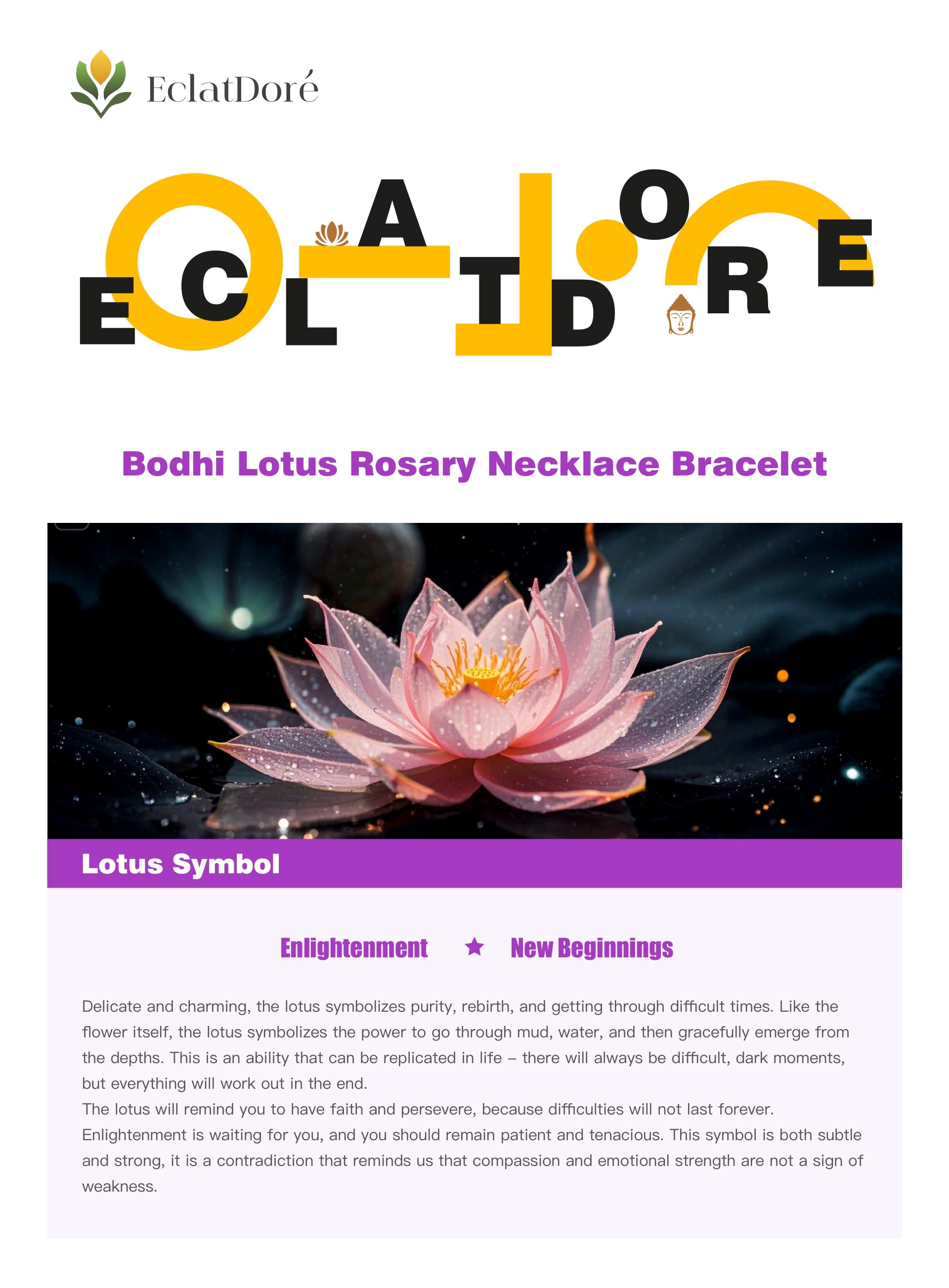 The lotus will remind you to have faith and persevere, because difficulties will not last forever. Enlightenment is waiting for you, and you should remain patient and tenacious. This symbol is both subtle and strong, it is a contradiction that reminds us that compassion and emotional strength are not a sign of weakness.