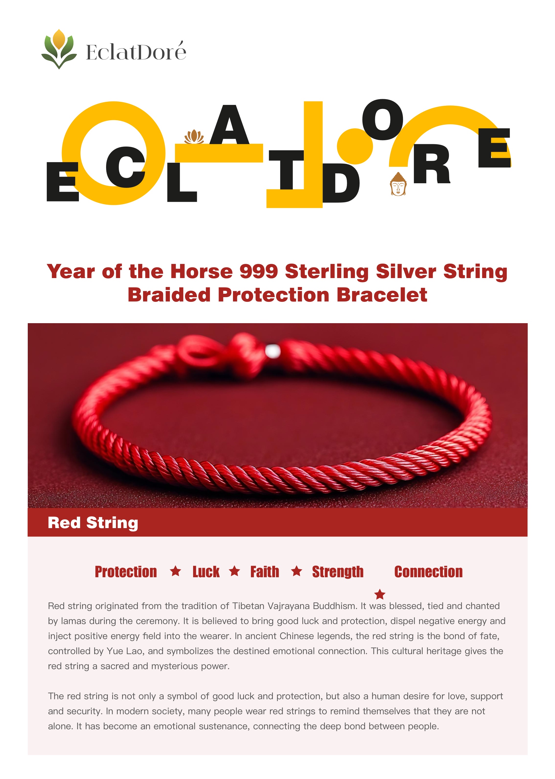 The red string originated from the tradition of Tibetan Vajrayana Buddhism. During the ceremony, the lamas prayed, tied knots and chanted mantras. It is believed to bring good luck and protection, dispel negative energy, and inject positive energy fields into the wearer. In ancient Chinese legends, the red string is the bond of fate, controlled by Yue Lao, and symbolizes the destined emotional connection. This cultural heritage has given the red string a sacred and mysterious power.